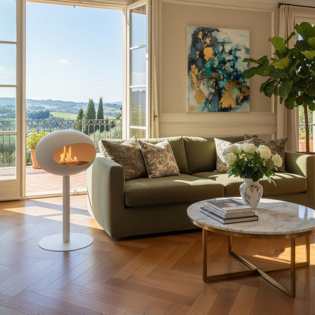 Non ! La cheminée Aston fonctionne avec du bioéthanol, l’un des combustibles les plus propres. Contrairement aux cheminées au bois ou au gaz, elle ne génère aucune fumée, suie, cendre ni toxine nocive. Ses seuls résidus sont une faible quantité de vapeur d’eau et une infime émission de CO₂, même inférieure à celle d’une bougieLe bioéthanol brûle si proprement qu’aucun conduit, cheminée ou système d’évacuation n’est nécessaire.